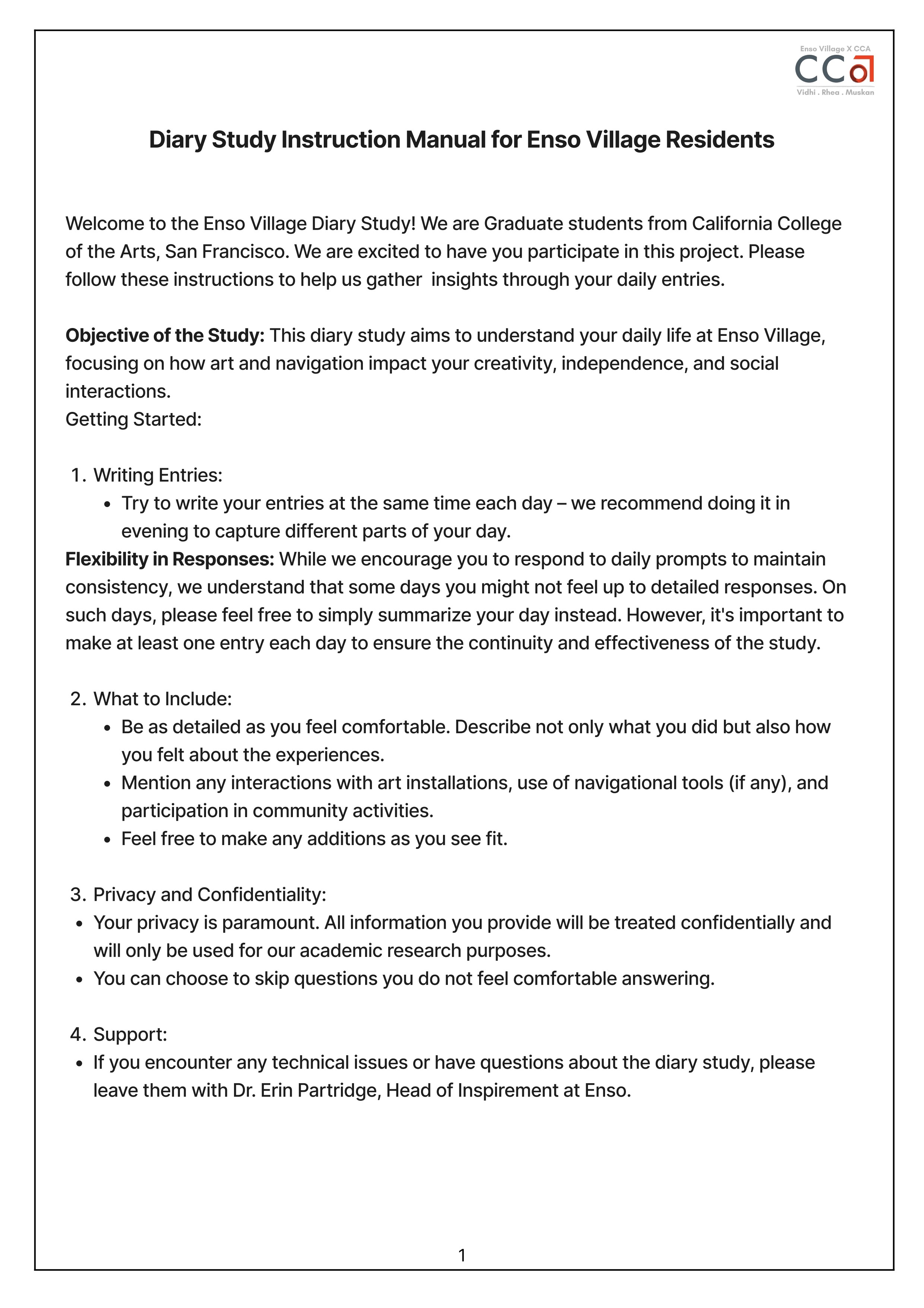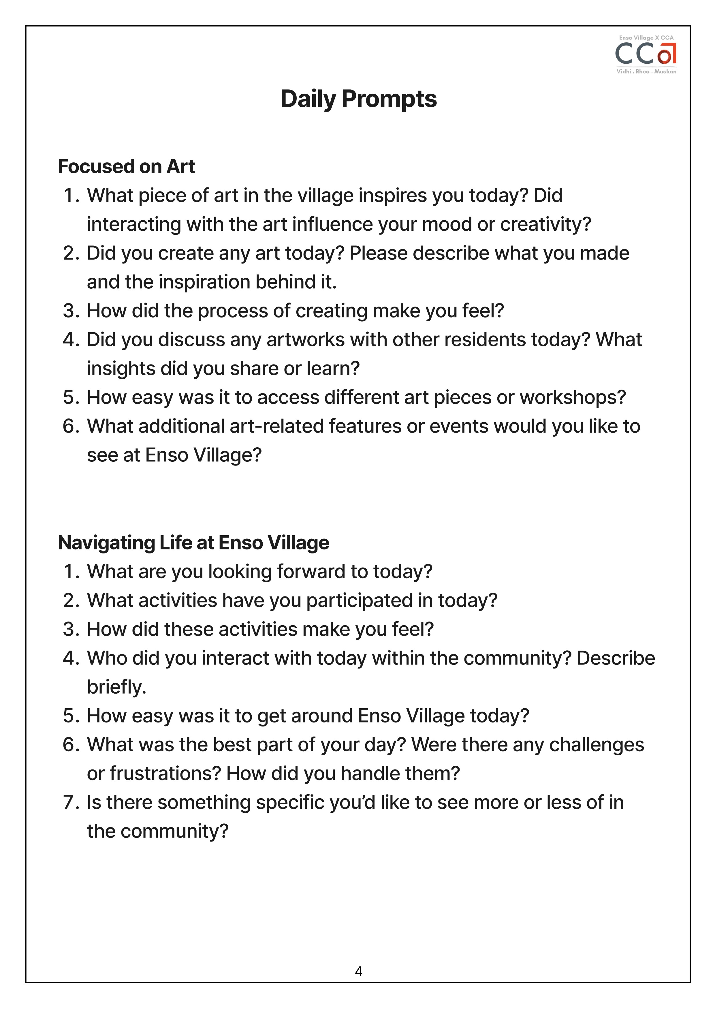 Resident’s apartment + information pamphlet with a basic map
