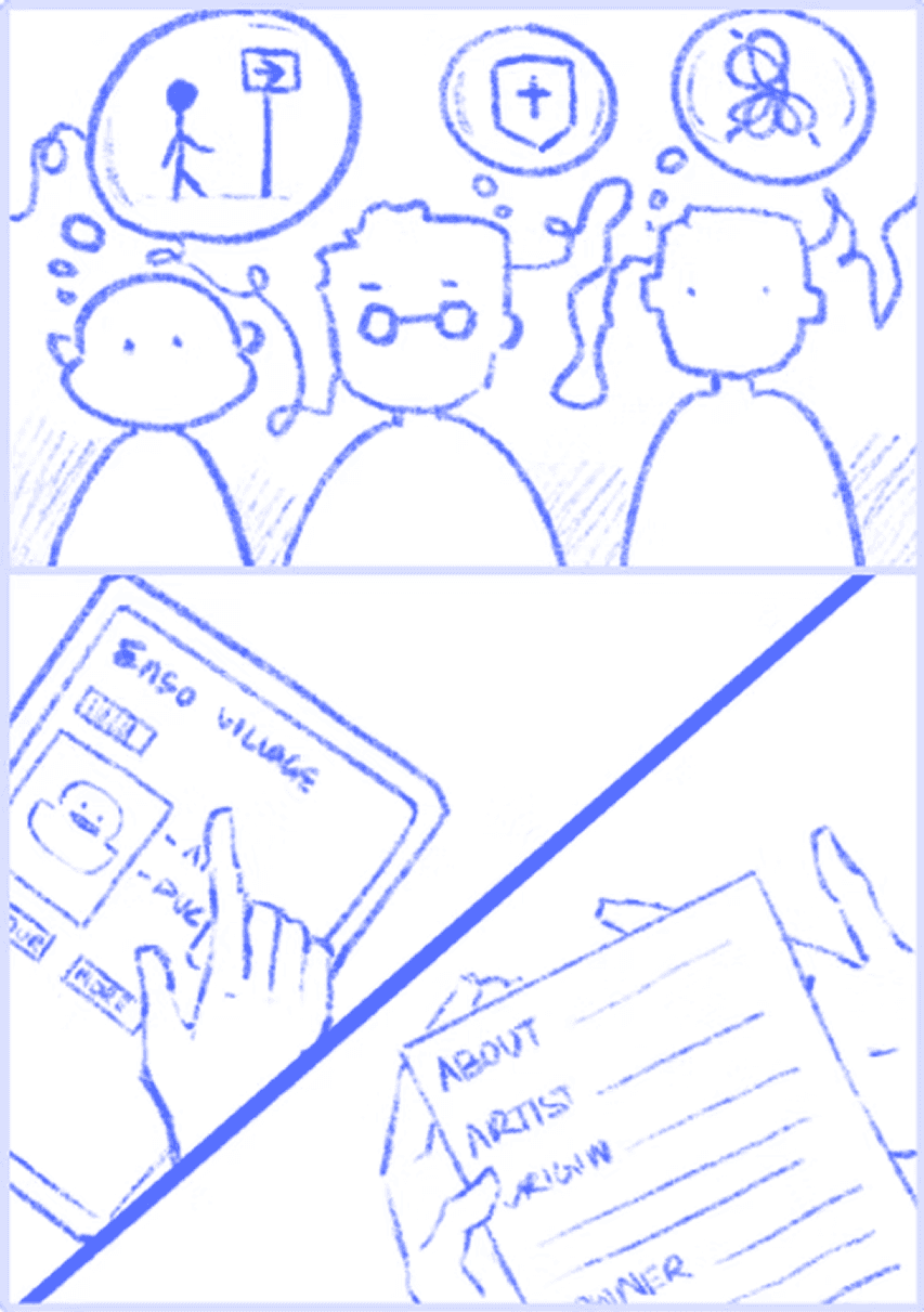 Install mid-corridor art installations and interactive digital displays that provide location information and interactive stories.