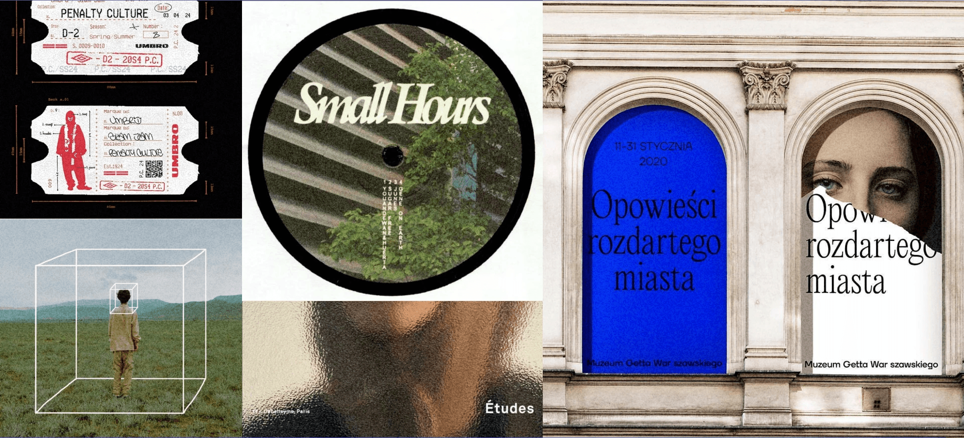 To establish a mood that felt both archival and contemporary, I drew from editorial design, exhibition graphics, and independent music/film culture.